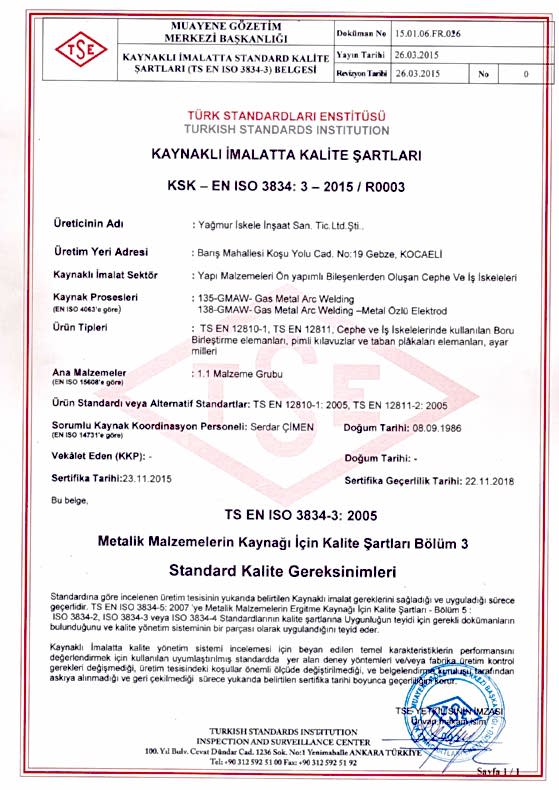 Kaynakl� �malatta Kalite Belgesi